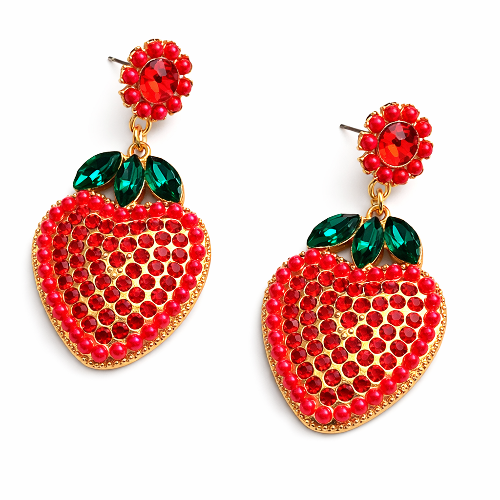 - These earrings are bold, playful strawberry-inspired statement drops with vibrant color and sparkle.