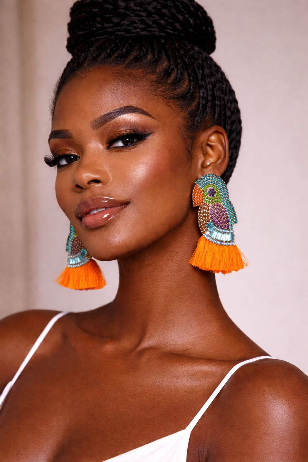 These earrings are bold, tropical parrot-inspired tassel statement earrings designed to command attention.