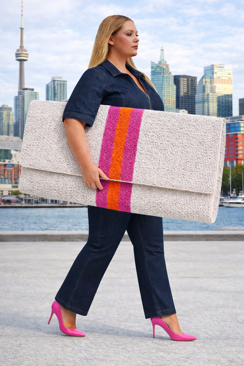 • Color Block Seed Beaded Clutch / Crossbody Bag