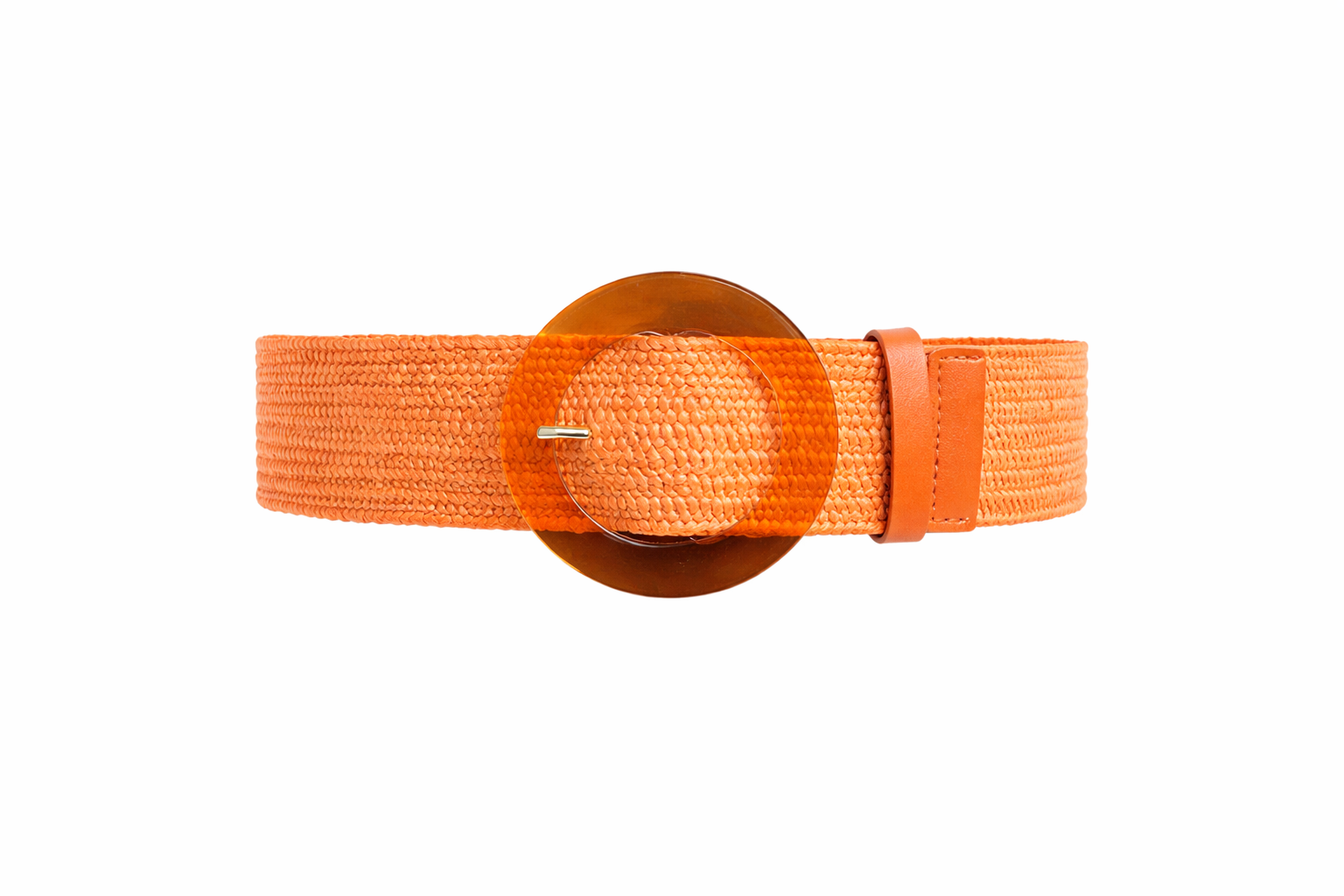 - This vibrant orange stretch belt features a textured woven design that adds bold color and eye-catching detail to any outfit.